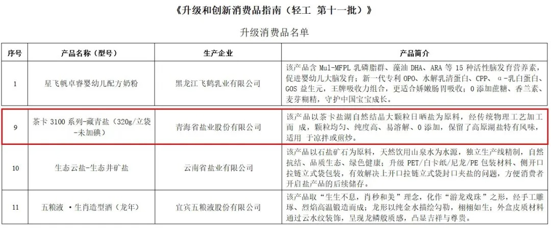 中国轻工业联合会此次升级消费品评选旨在推动消费品工业增品种、提品质、创品牌,为消费者提供更高品质的生活选择。此次评选经行业推荐、专家评审、市场验证等多道严格程序筛选,其中全国入选升级消费品仅115个,作为青藏高原特色盐品的代表,“茶卡藏青盐”以其天然纯净、绿色健康的核心优势,跻身国家级升级消费品行列,无不彰显着其优良且可值得信赖的产品品质。