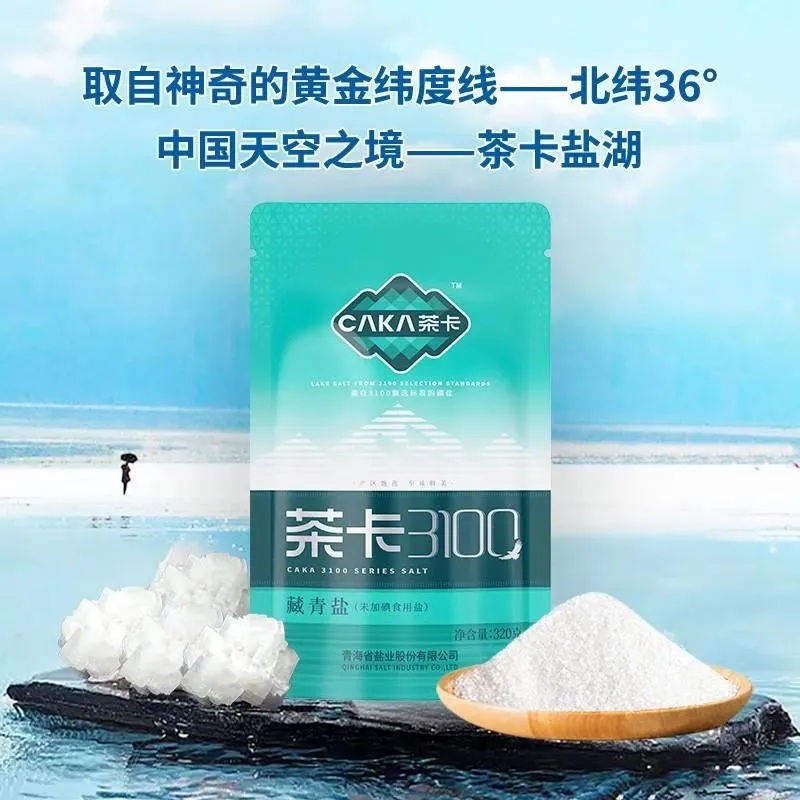 “茶卡藏青盐”以亿万年前天然结晶的茶卡湖盐为原料,在保持原有微量元素的基础上,经纯物理加工而成,不经过任何化学方法,也无任何添加剂,符合国家食用盐最高级质量标准,盐粒晶大质纯、盐味醇香,保持了产品纯天然、无污染的优良品质,味道纯正鲜美,含有人体所需的钙、镁、钾、锌、硒等多种微量元素及冬氨酸、谷氨酸、丙氨酸等多种氨基酸,具有咸的调味价值。原料盐氯化钠含量在97.5%以上,氨基酸含量达到70mg/kg,以其天然纯净、富含微量元素的高品质在食盐市场中独树一帜。该产品自上市以来,以“看得见的晶魄、品得出的纯净”为卖点,通过线上直播销售,年销量高达608万袋。