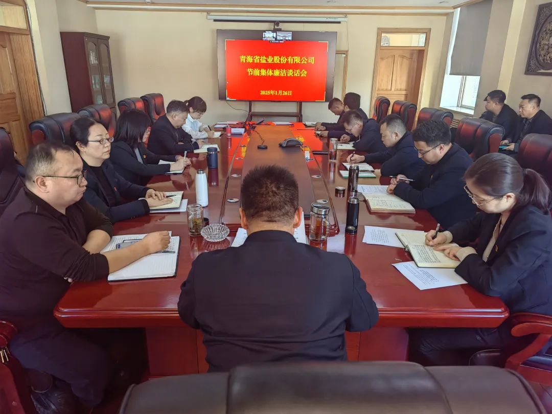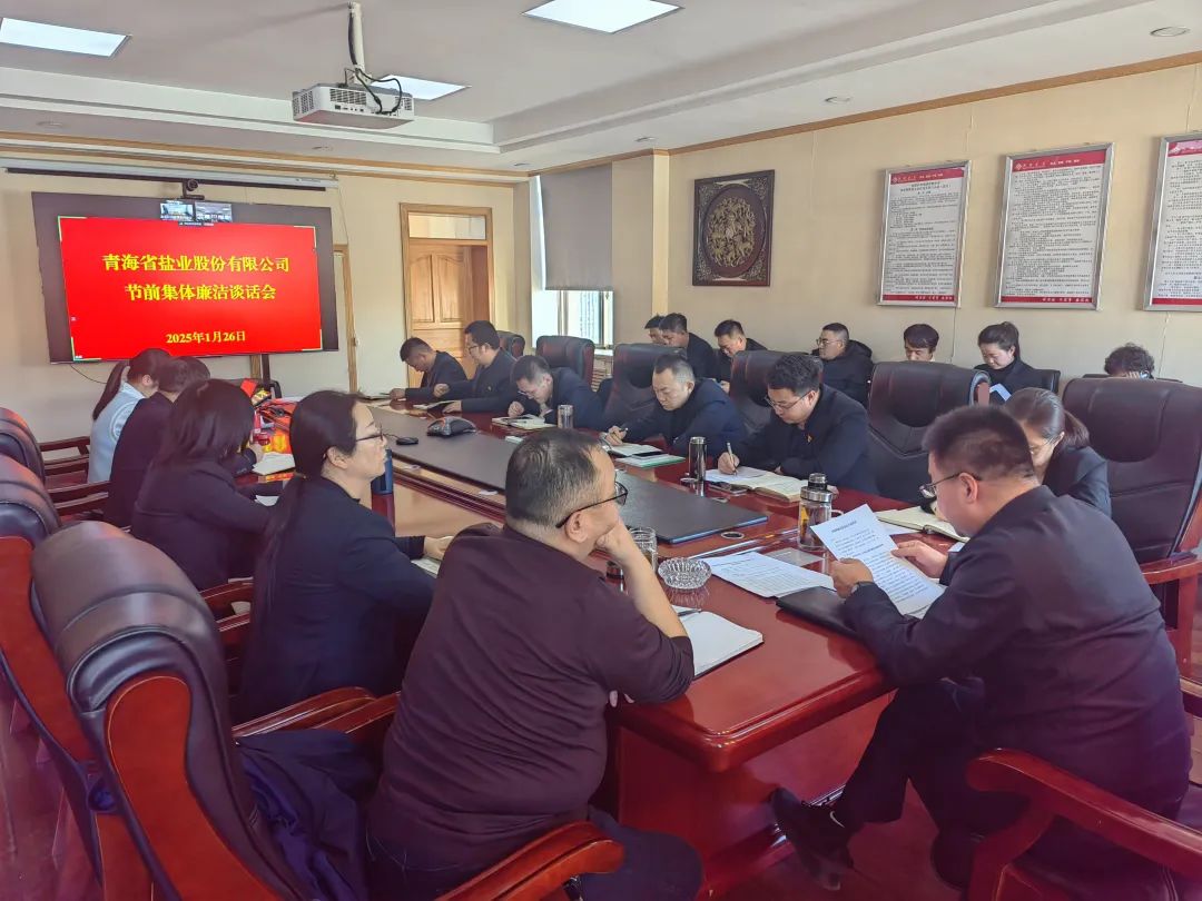 在2025年春节即将来临之际,青海省盐业股份有限公司党委书记、董事长刘朝昆与公司中层及以上管理人员、党员、重点关键岗位人员开展节前集体廉洁谈话,提醒大家切实增强纪律意识、规矩意识,始终保持清醒头脑,自觉把好“廉洁关”,筑牢“廉洁防线”,过一个平安、祥和、廉洁的春节。